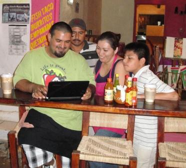 After "surfing", we enjoyed tacos at Captain Cook's on the beach and wandered through town. While walking up the main street, we peaked into Mary's Tacos and spotted the hardest working man in Sayulita on a computer looking at Trip Advisor for our review.